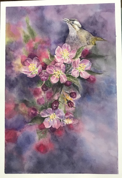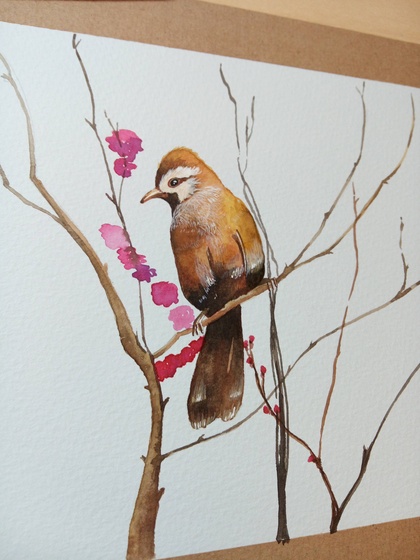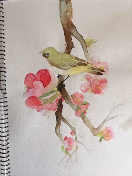 绣眼鸟-水彩手绘