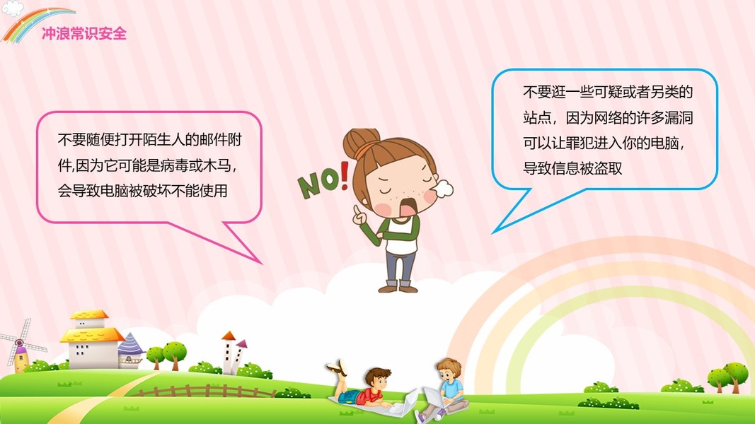 粉色可爱小学生网络安全知识教育培训PPT模板