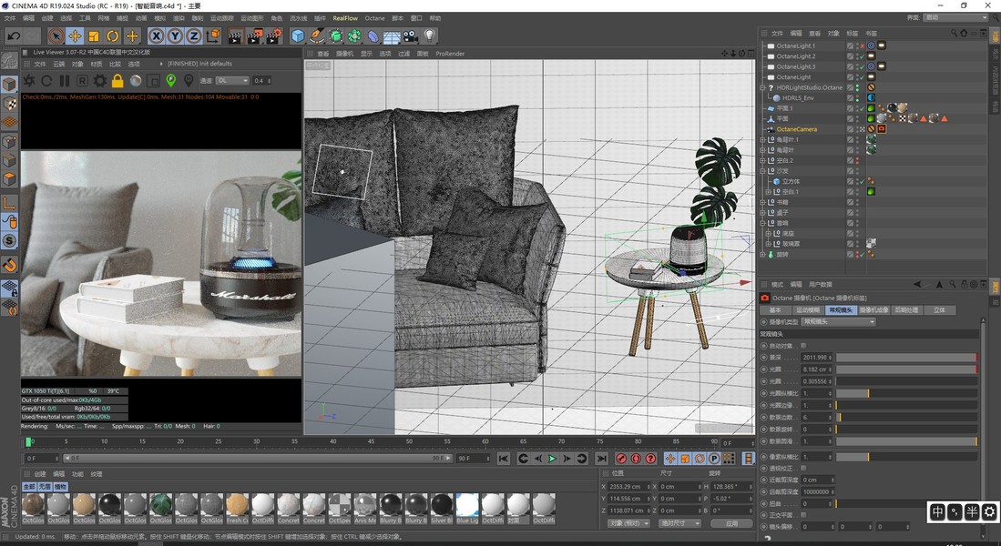 C4D+OC智能音响马歇尔(Marshall)场景建模场景渲染