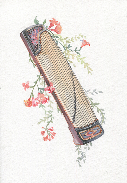 水墨中国风插画——竹间系列·中国传统乐器古筝