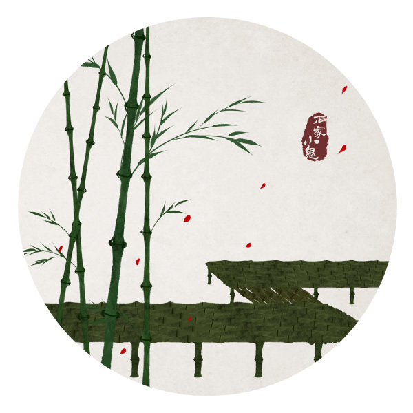 水墨中国风插画——竹间系类·一蓑烟雨任平生