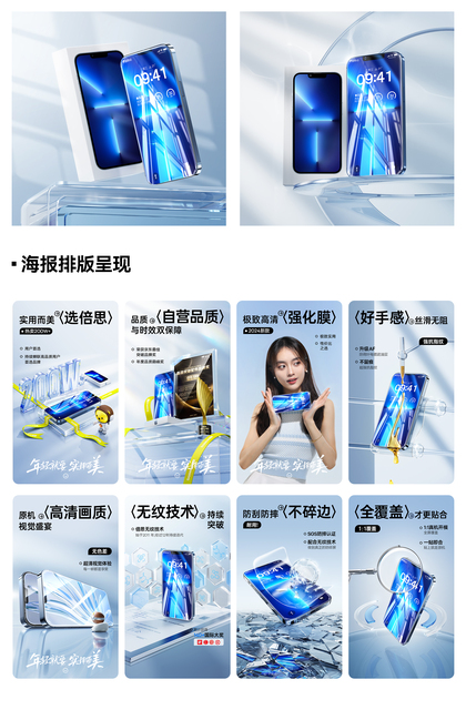 【数码】钢化膜防尘膜--3D渲染详情页设计