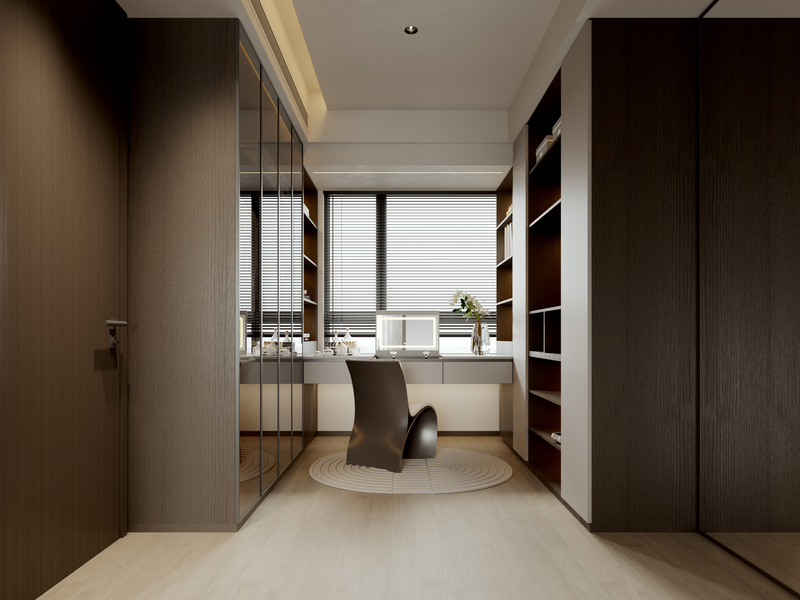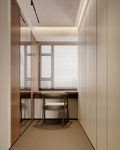 侘寂风奶油茶色别墅带庭院样板房效果图