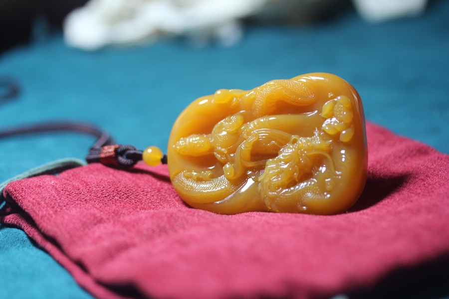 玉石手工雕刻黄蜡石三生三世枕上书 凤九 神兽九尾狐