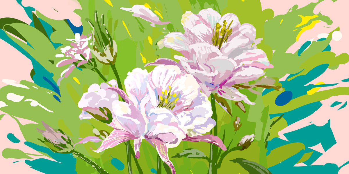 国潮百合艺术背景