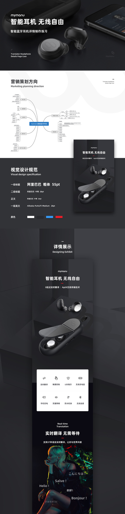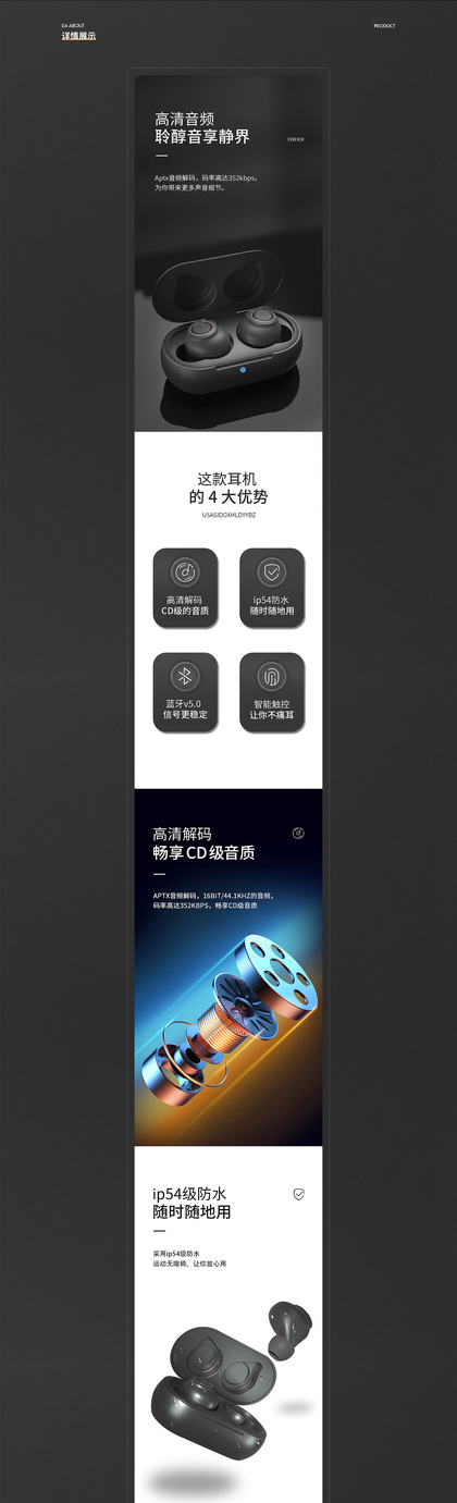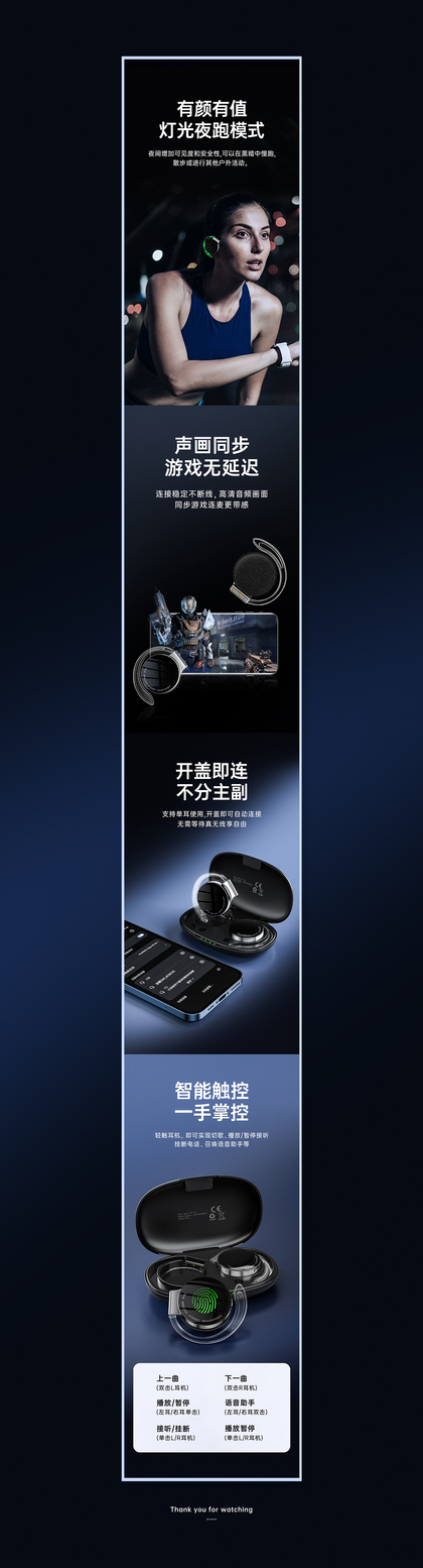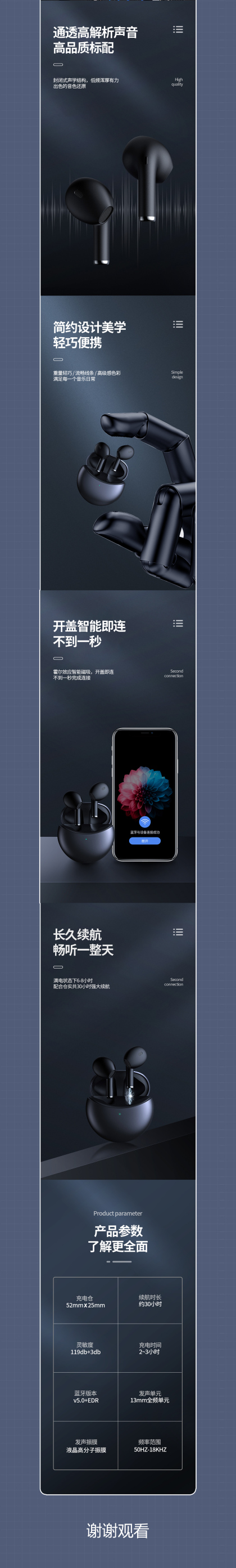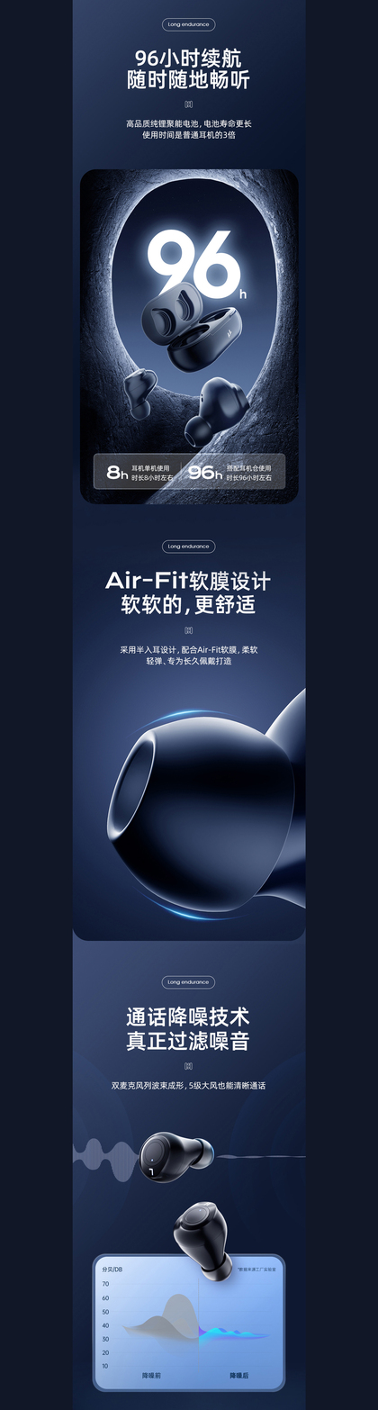 数码 蓝牙耳机 降噪 科技感风格 移动潮流 详情页