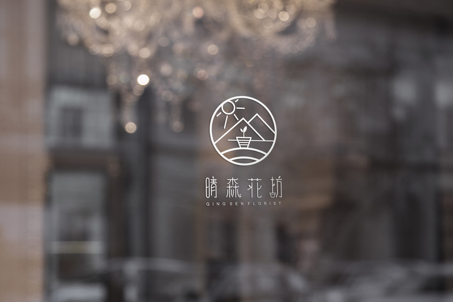 #晴森花坊 Logo设计#,晴森音译情深,晴化作太阳,林化作森,盆栽埋在深处茁壮成长,极简表达。