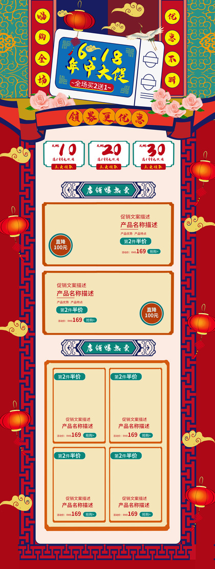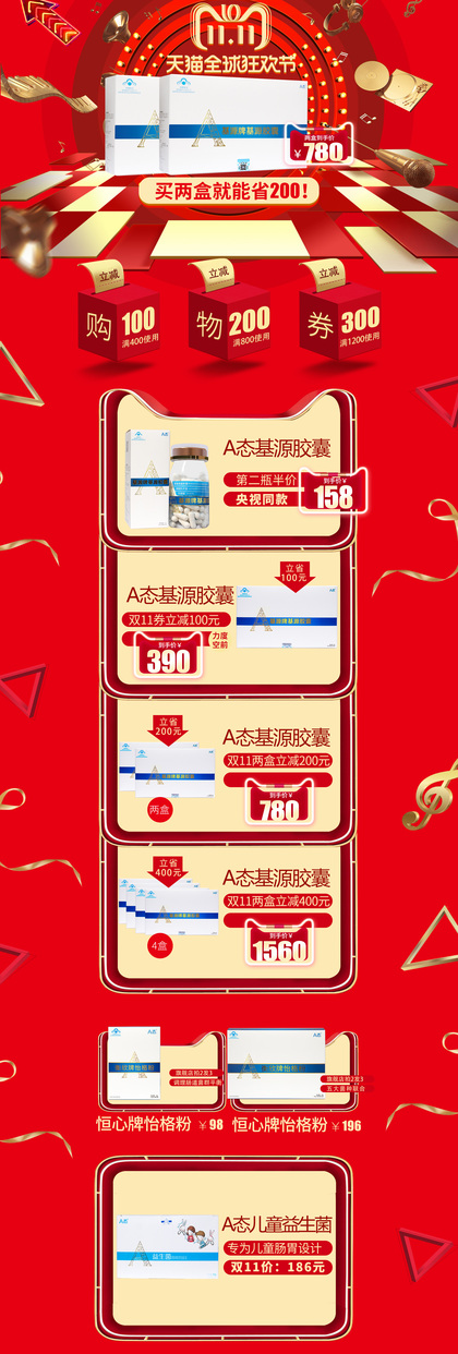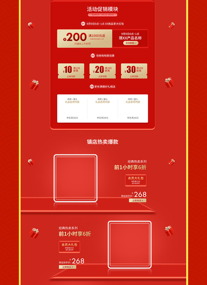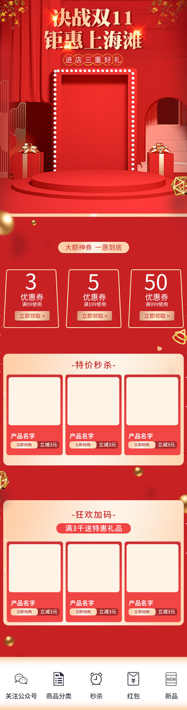 红色活动首页模板预售双11双12大促首页C4D立体简约风