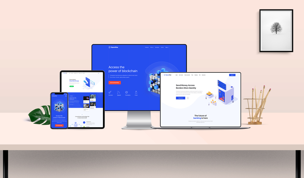 响应式网站的无边框苹果设计UI展示样机(4套样机)