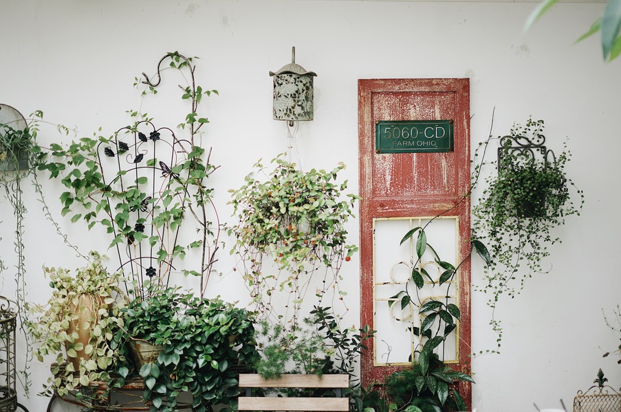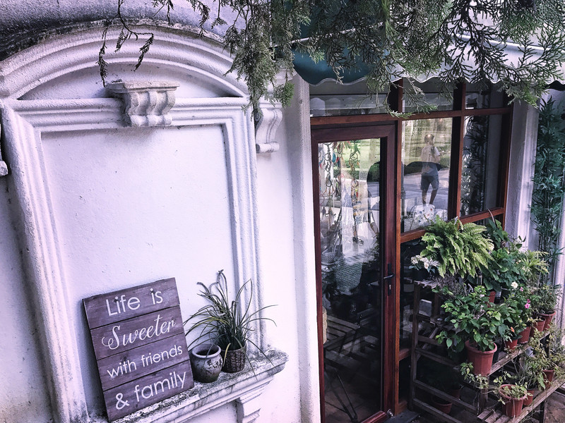 婧苑·花间语茶社 3门口的展台造型搭配。