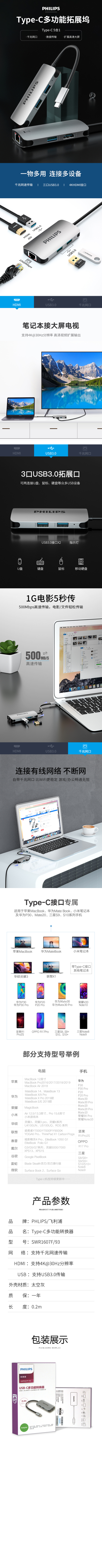 Type-C MacBoook 笔记本 手机拓展坞转换器