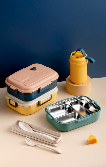 日常餐具拍摄 电商上班族便携便当盒塑料撞色饭盒