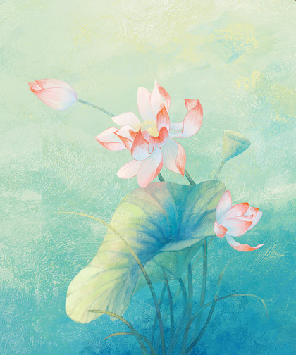 梦幻清新荷花水彩