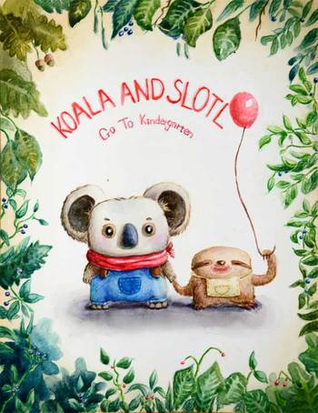 原创作品:水彩插画《小考拉和小树懒》——一起去上幼儿园~