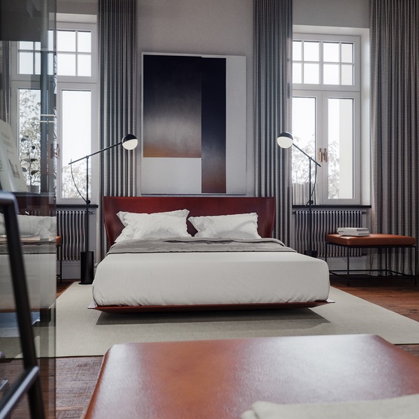 质感工业风家居设计,用暖色家具和艺术画平衡冷冽感