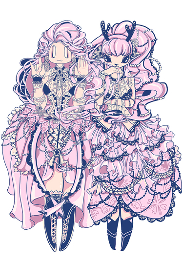 两个粉红女孩纸雕
