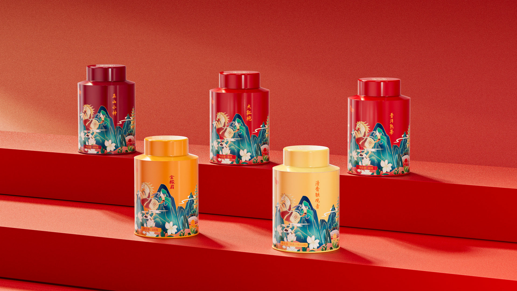 八马茶业集团(欢腾系列)铁罐茶插画包装设计