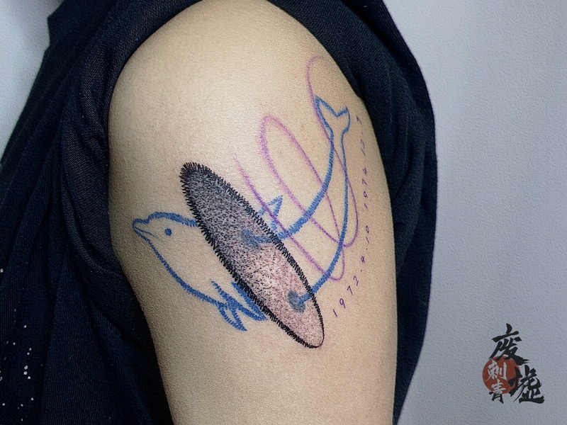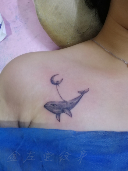 锁骨月牙海豚纹身河南水冶金左堂纹身遮盖疤痕修改纹身