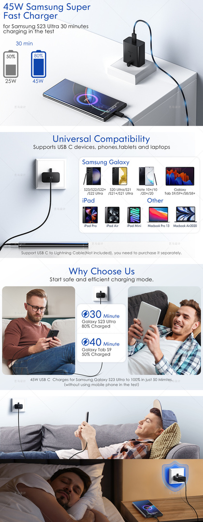手机配件 45w充电器-Amazon案例 亚马逊主副图A+设计