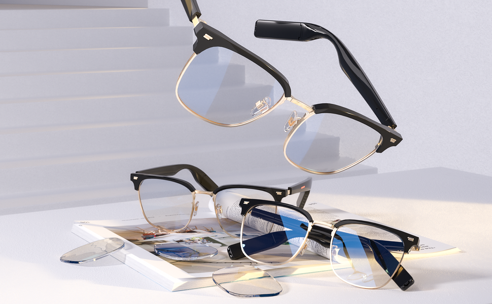 智能音乐眼镜的产品玻璃质感表现(天猫详情)