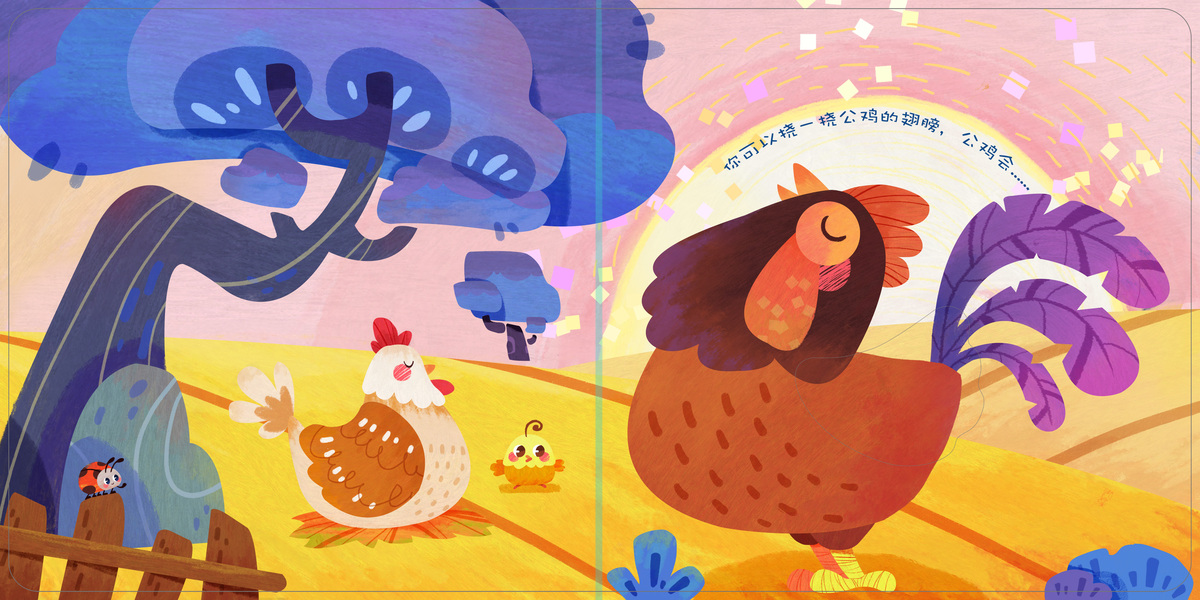 水墨及创意风格大合集-《中秋献礼》公鸡农场秋天