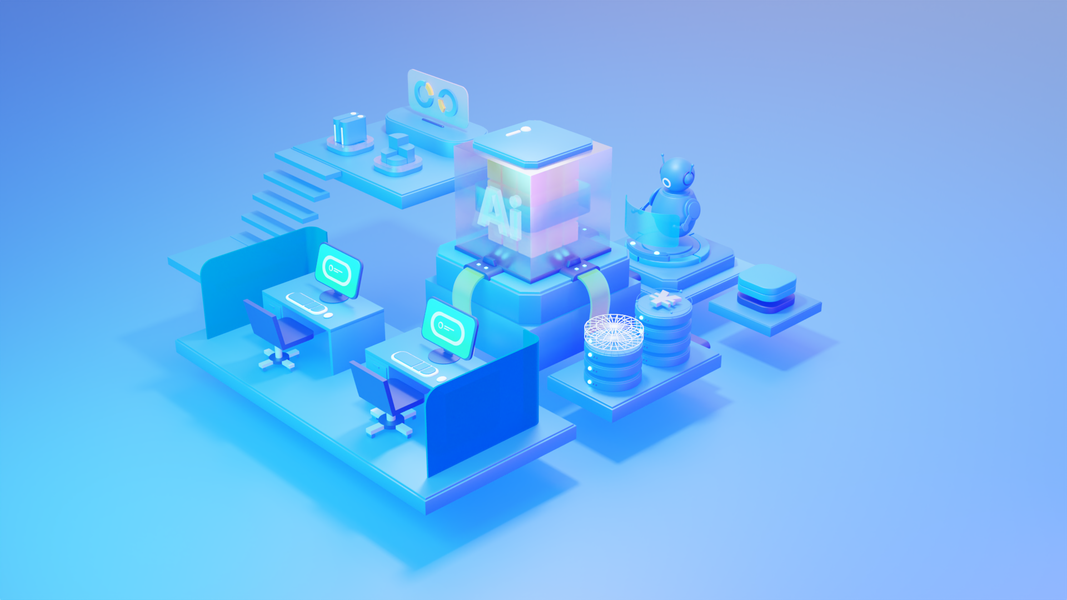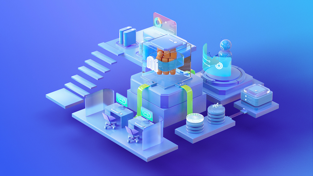 Blender微软风磨砂渐变玻璃材质半透明音符耳机场景