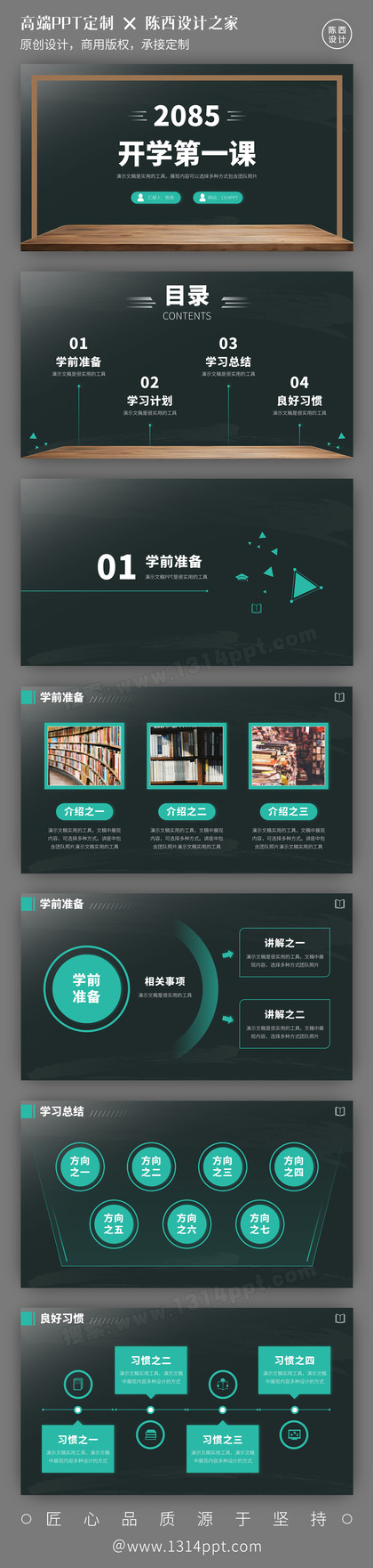墨绿色简约教育课件说课开学第一课讲课大赛PPT模板