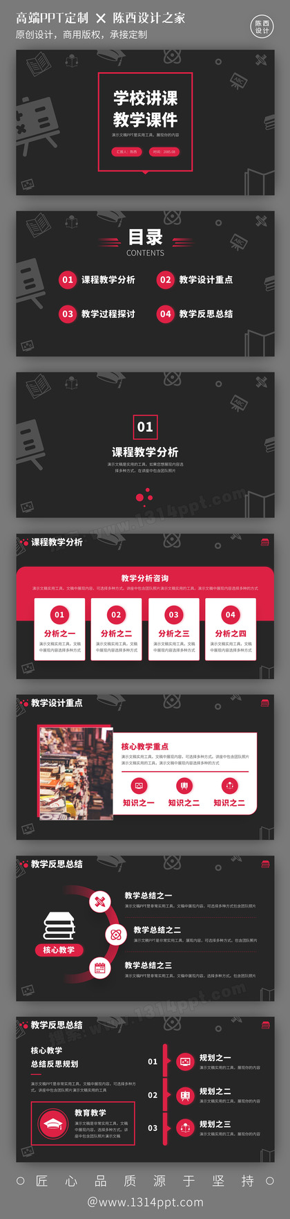 红黑色教育课件教学说课公开课比赛汇报述职PPT模板