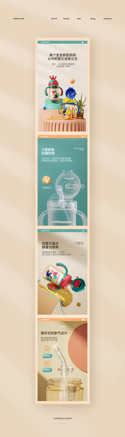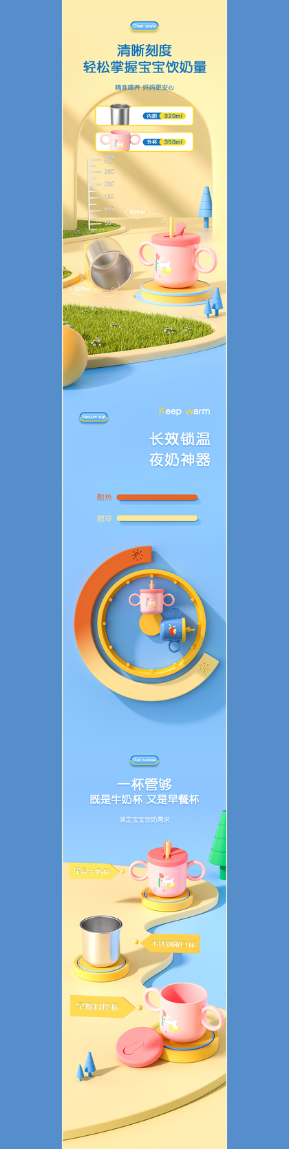 详情页设计 水杯/保温杯详情 三维视觉/治愈风