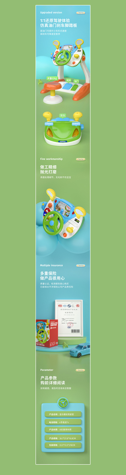 仿真方向盘音乐模拟驾驶室儿童玩具详情页策划设计
