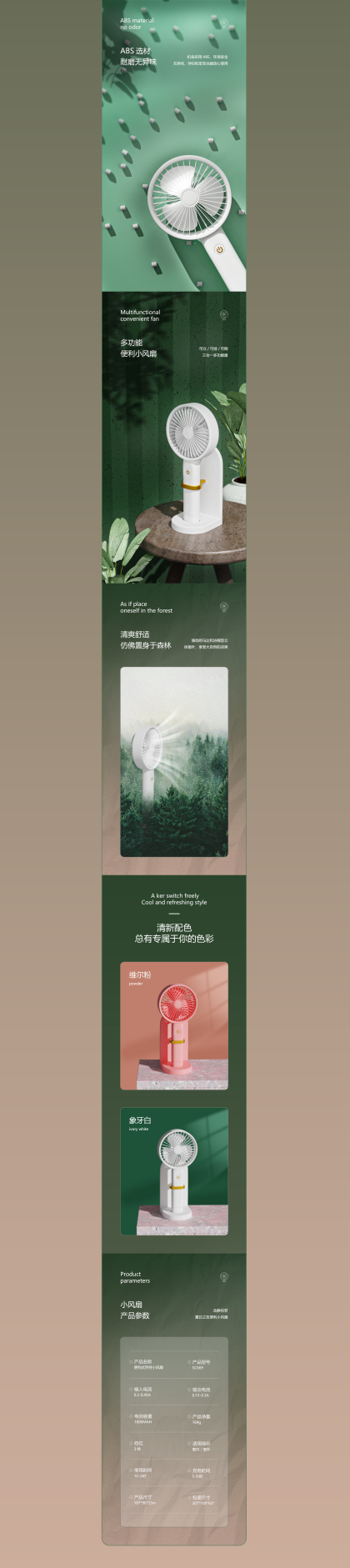 蓝牙音响/风扇建模详情页+耳机/腮红/螺蛳粉平面详情页