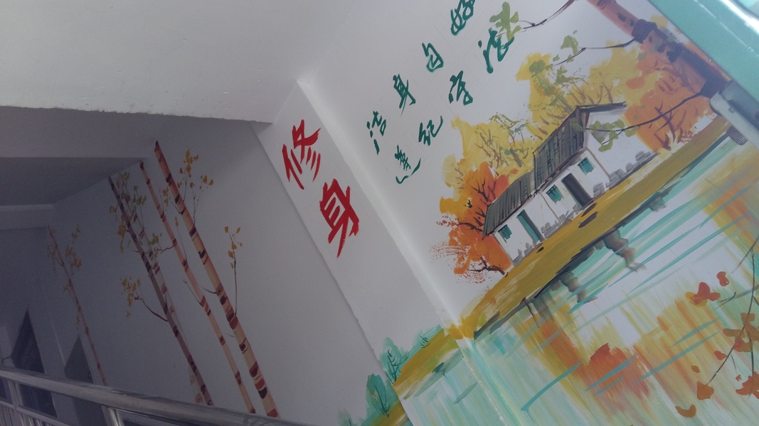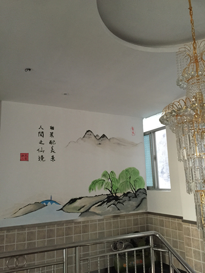 楼梯间侧墙水墨国画墙体彩绘