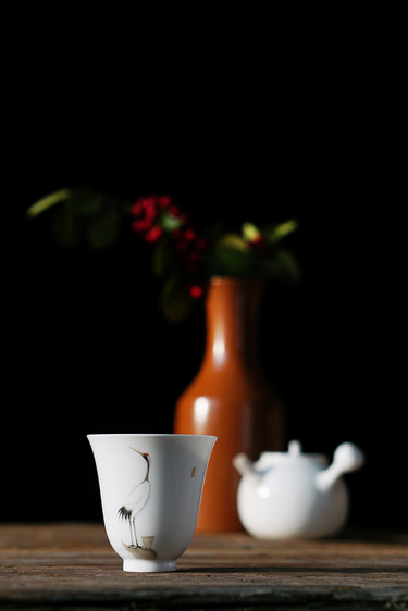 一山造物/《瑞鹤迎春》手绘粉彩主人杯