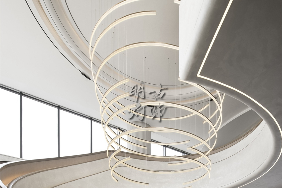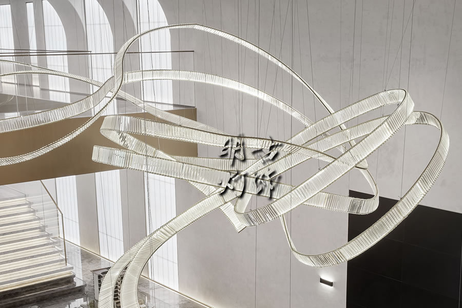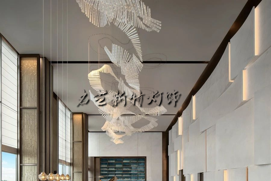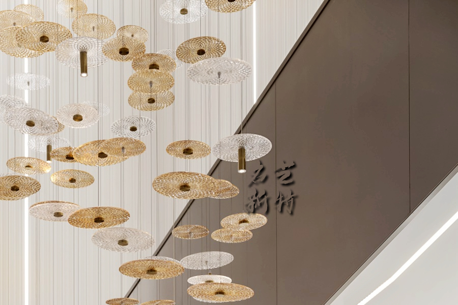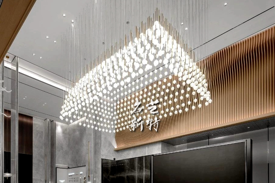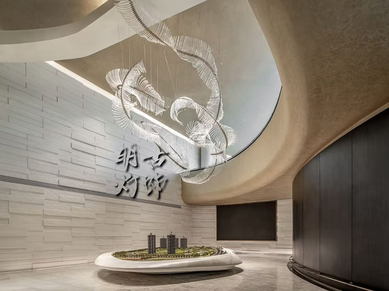 高低垂坠沙盘吊灯形成错落有致的空间层次感