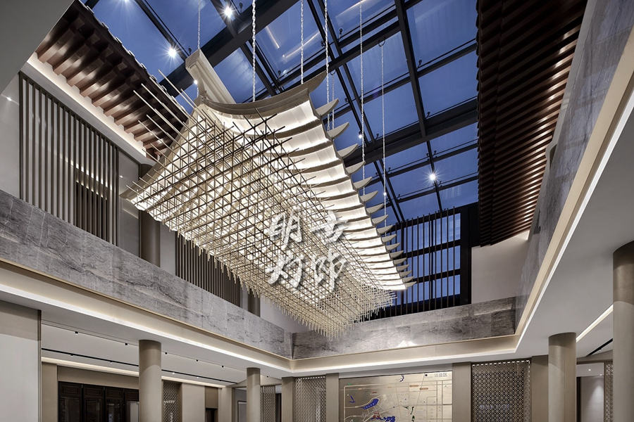 榫卯结构屋顶吊灯 灯具定制体会东方美学的魅力