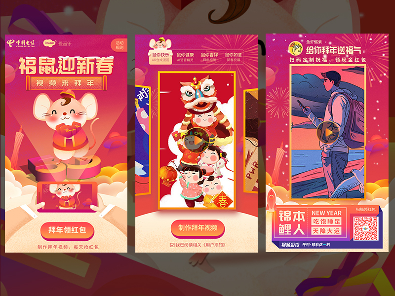 2020年新年福鼠迎新春中国电信新年5G拜年插画手绘界面