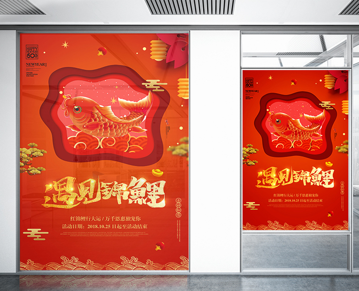 大气红色遇见锦鲤活动海报