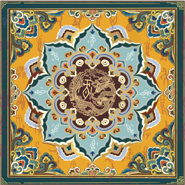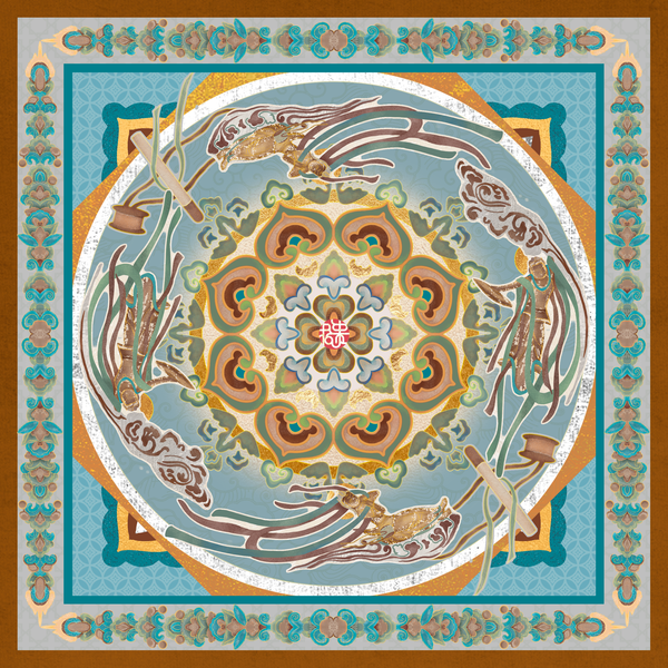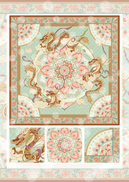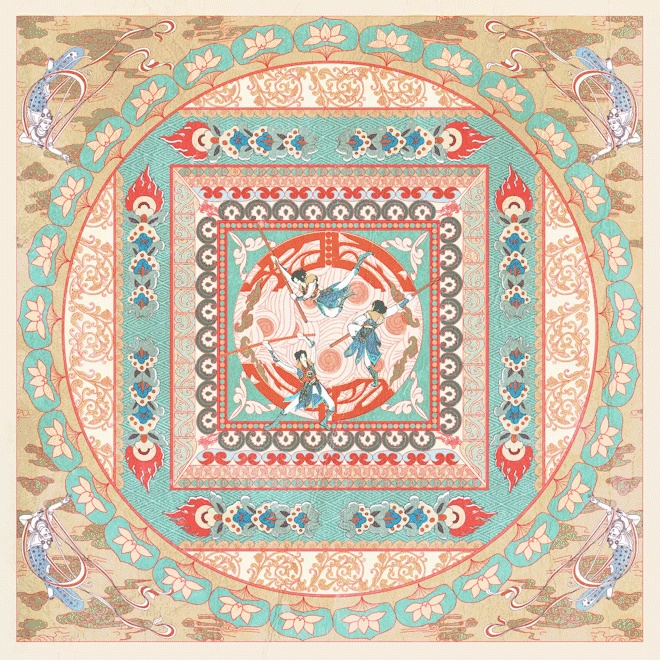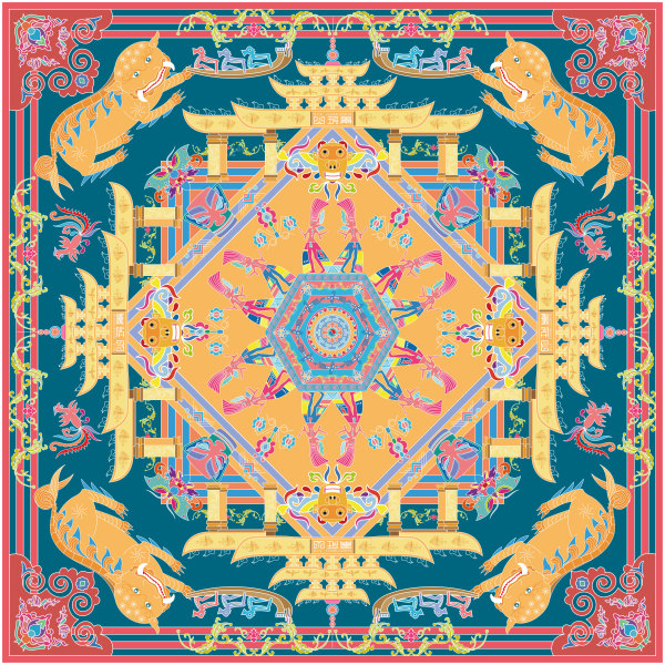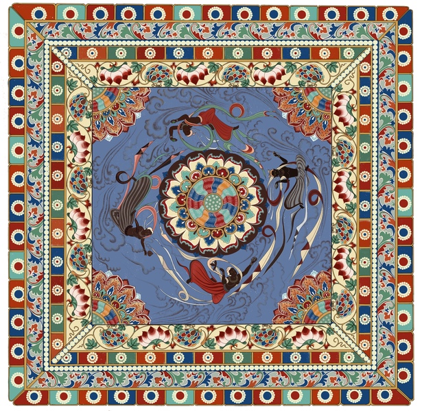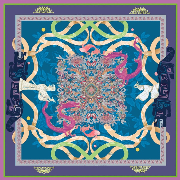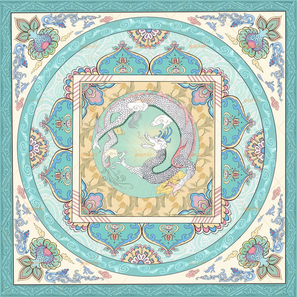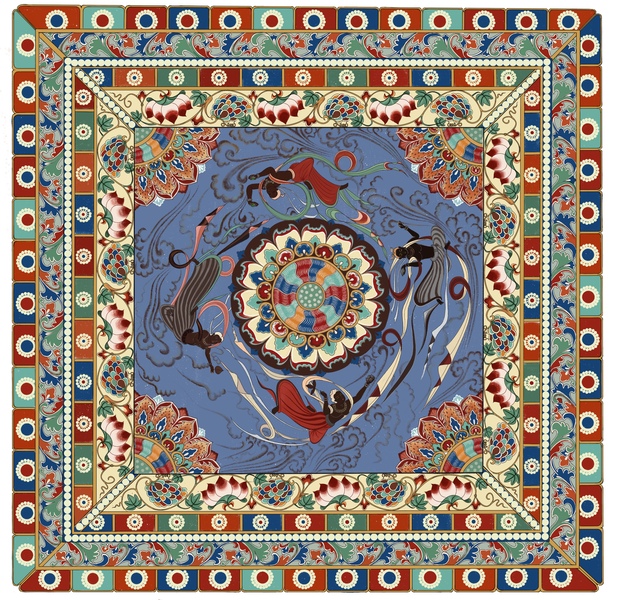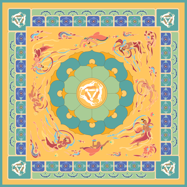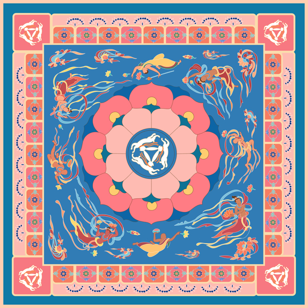 以敦煌藻井飞天莲花为灵感的飞龙莲花方巾