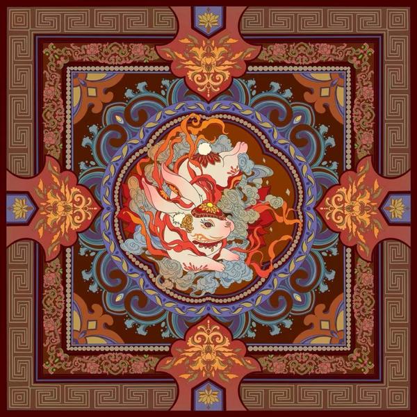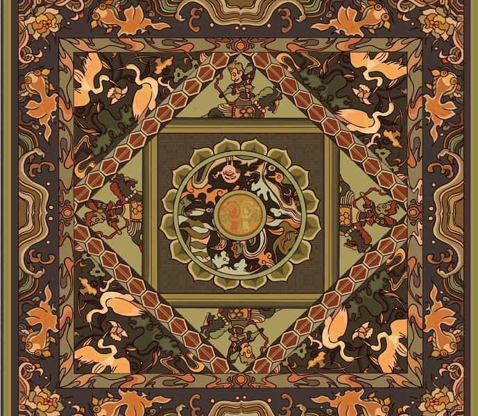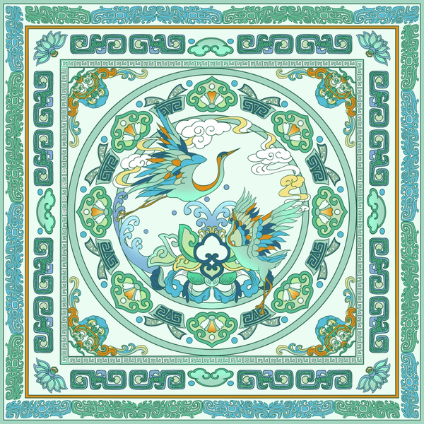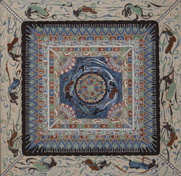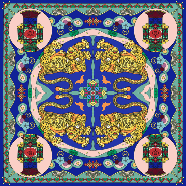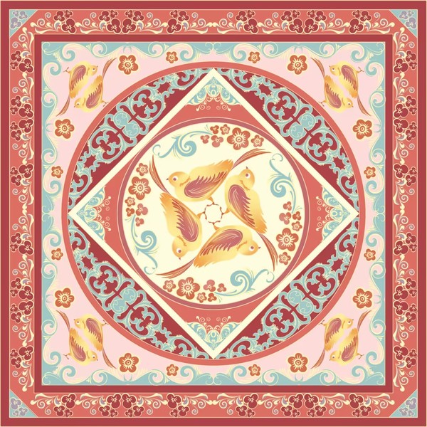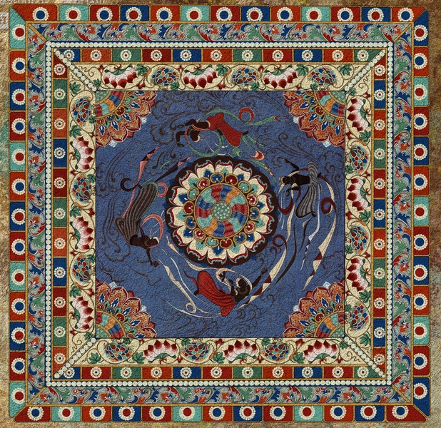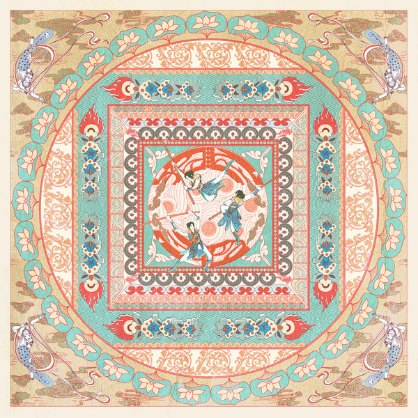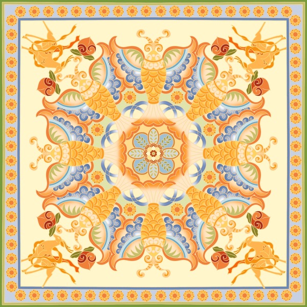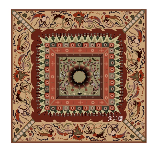 以敦煌藻井飞天莲花为灵感的飞龙莲花方巾
