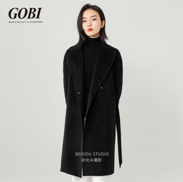 模特拍摄 羊绒毛呢外套女中长款风大衣