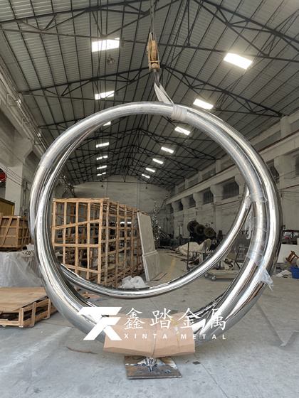 镜面不锈钢圆环雕塑实景案例
