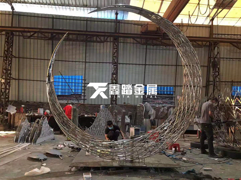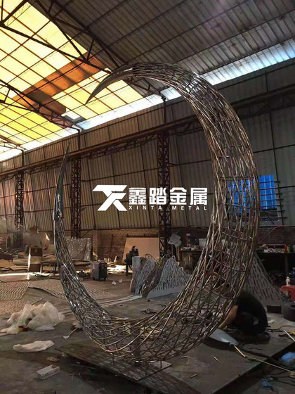 景观编制镂空艺术雕塑 广场中轴景观不锈钢月亮雕塑