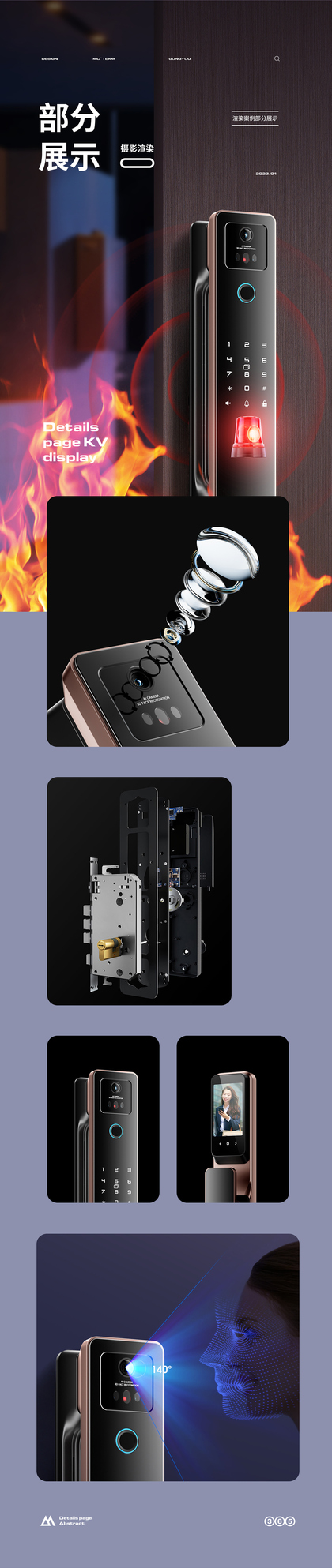 防火智能指纹锁详情页 案例合集 渲染建模 人脸识别