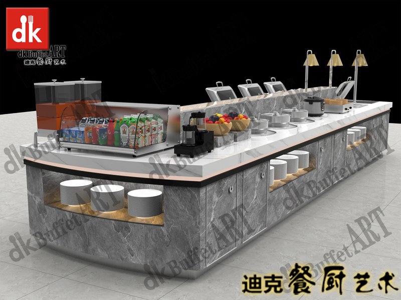 大理石自助餐台效果图 单位食堂冷热组合布菲台