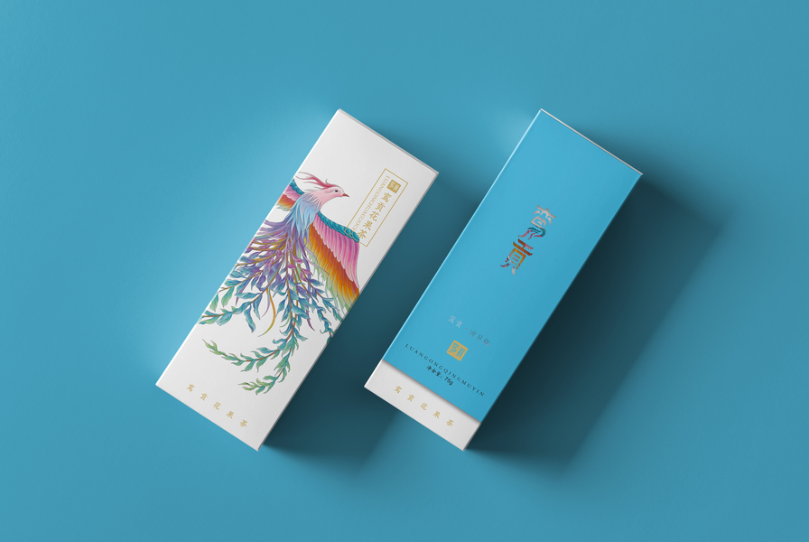 花茶包装设计手绘花茶包装鸾鸟凤凰插画手绘包装