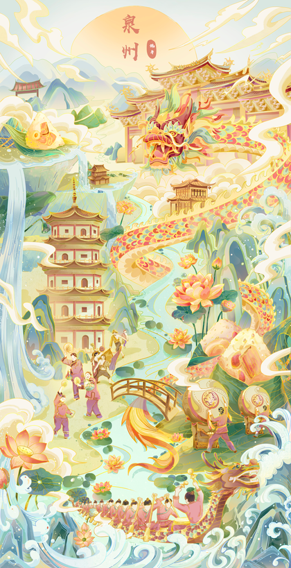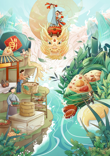华夏情,粽之节--端午节国潮风包装海报主视觉KV插画