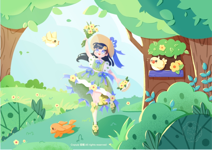 女孩插画||森系