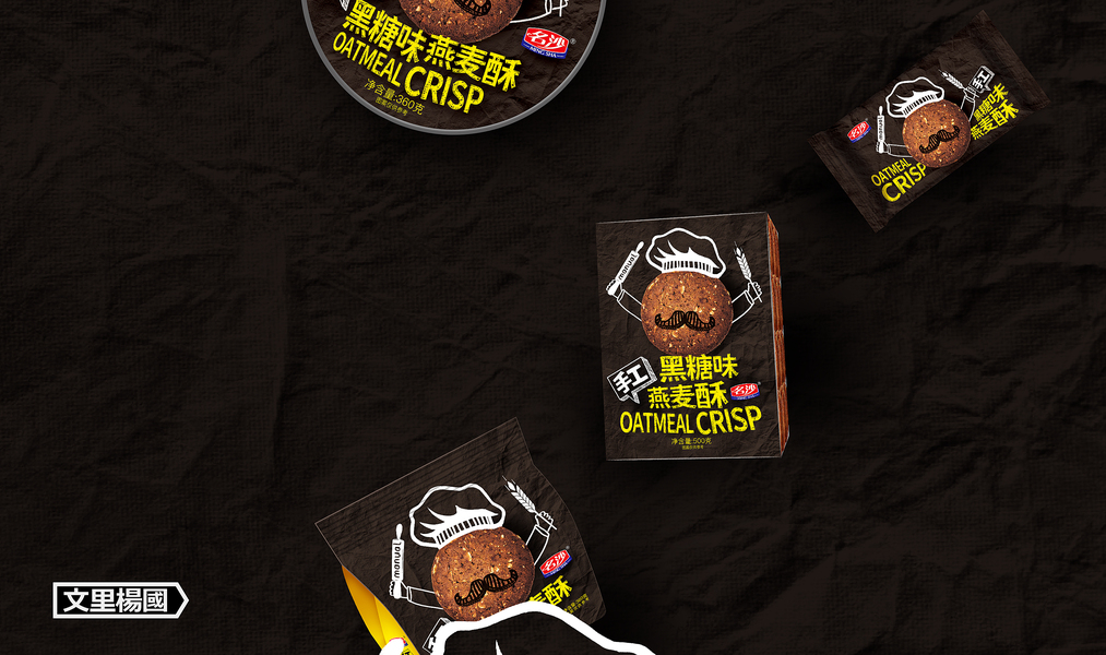 文里杨国.手工黑糖味燕麦酥-原创休闲食品包装设计