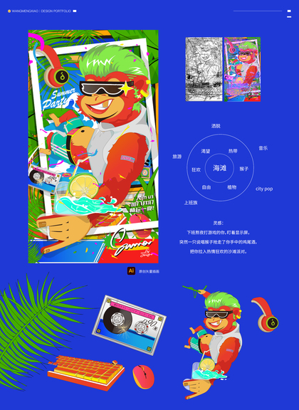 矢量鸡尾酒品牌商业插画海报(个人创作)