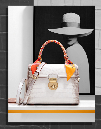 喜马拉雅白鳄鱼皮女包白底场景海报形象照详情拍摄案例